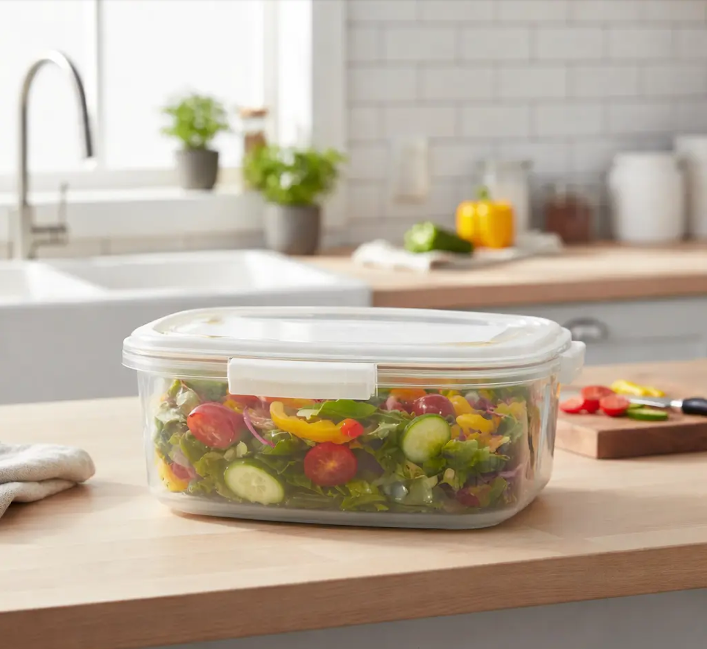 Plus besoin de multiplier les contenants : vous préparez directement vos salades, fruits ou desserts dans le bol, puis vous les servez tels quels.