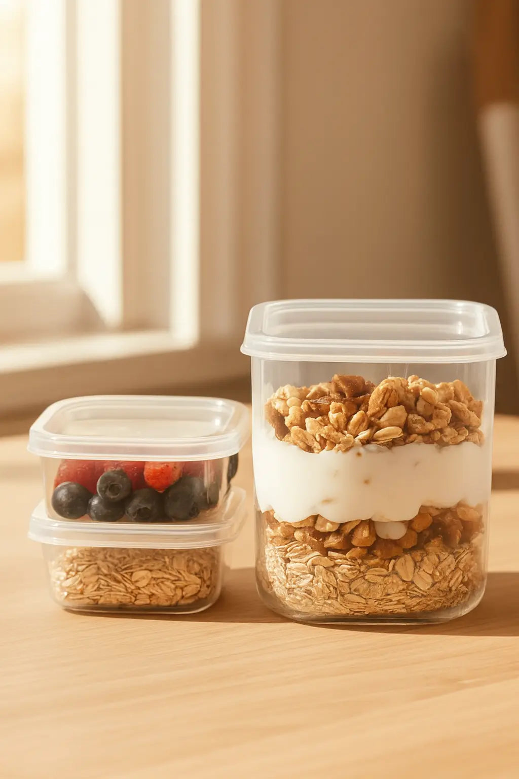 Fini les ingrédients oubliés dans le frigo! Grâce à ce pot pratique et transparent, vous préparez vos petits-déjeuners à l’avance et voyez d’un coup d’œil ce qu’il vous reste. Résultat ? Moins de gaspillage, plus de régularité et un gain de temps chaque matin.
